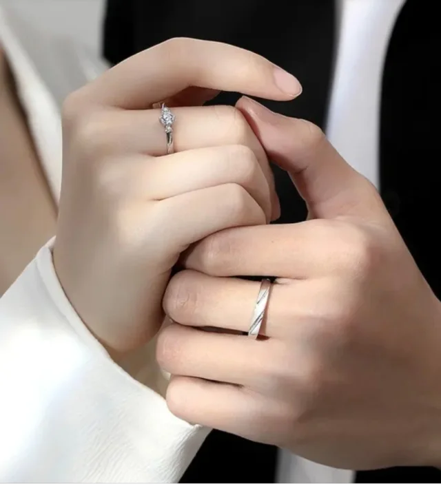 Descubre este elegante conjunto de alianzas de compromiso, elaboradas en Plata 925 y diseñadas para simbolizar unión, equilibrio y romanticismo.