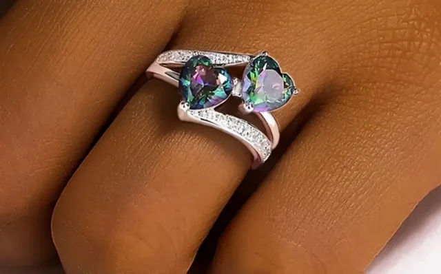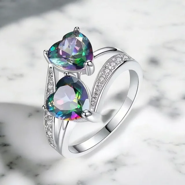 Anillo 2 corazones multicolor plata
