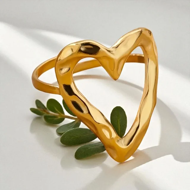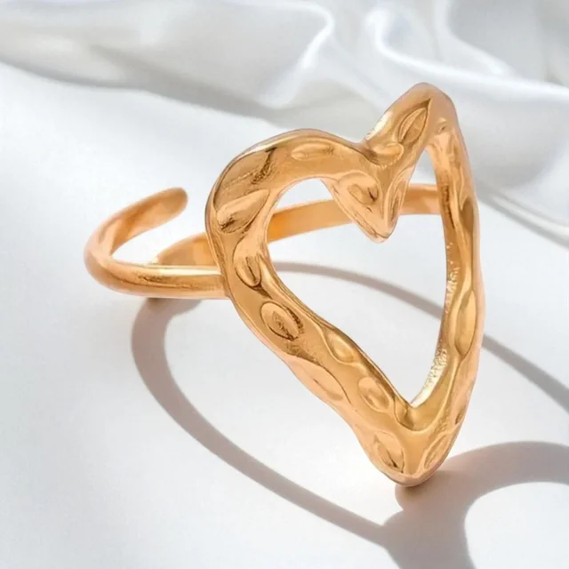 Precioso anillo de corazón con un diseño único y elegante. Es de color dorado y tiene un tamaño ajustable.
