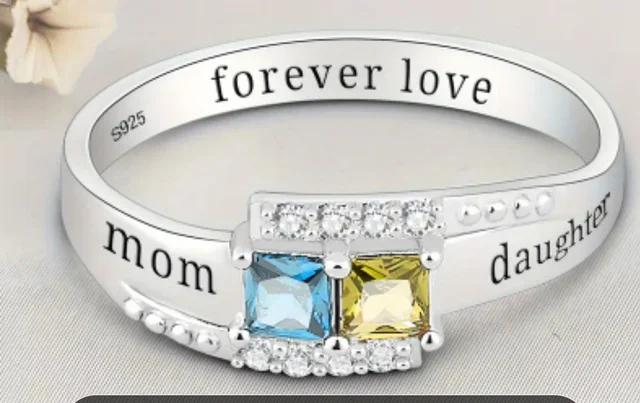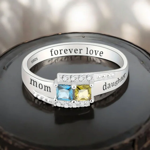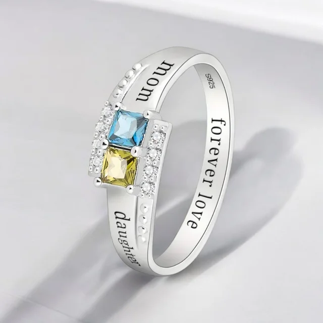 Encantador anillo de plata 925 con circonitas en tonos azul y amarillo, diseñado para simbolizar el vínculo especial entre madre e hija. Su diseño elegante y delicado lo convierte en un regalo perfecto para ocasiones especiales, transmitiendo amor y unión en cada detalle.