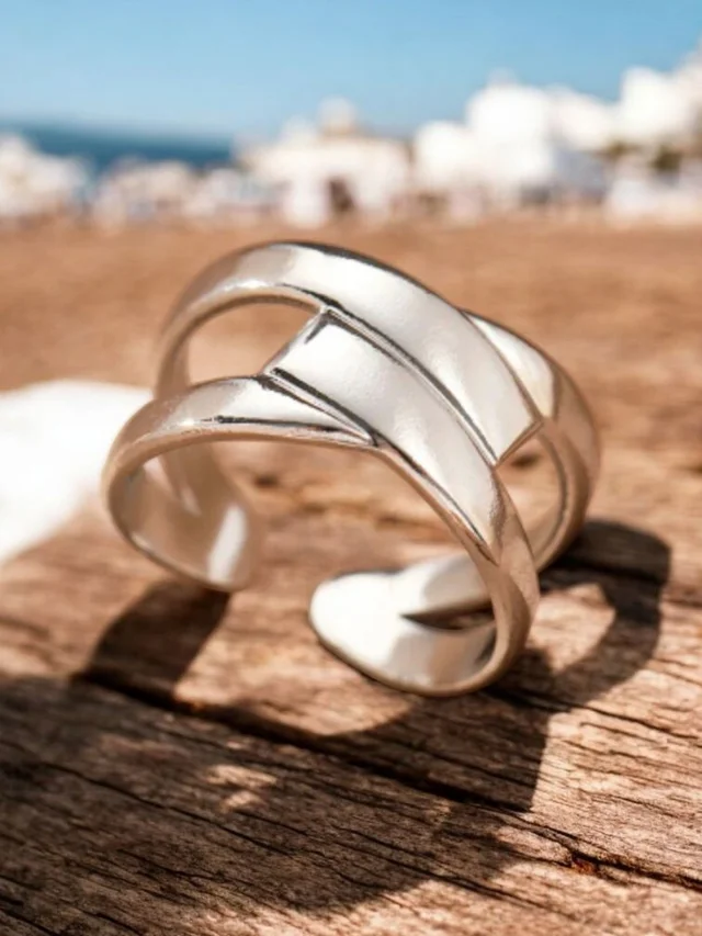Precioso anillo de plata de ley con diseño moderno entrelazado. Su estilo elegante y llamativo lo convierte en la pieza perfecta para lucir en cualquier ocasión, aportando sofisticación y distinción a tu look.