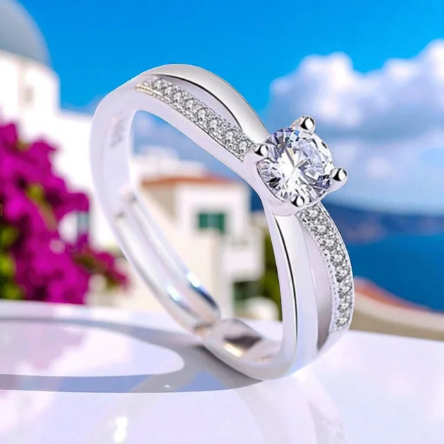Diseño moderno y atemporal en este anillo de plata ajustable con zirconio. Su talla adaptable lo hace perfecto para cualquier dedo, ofreciendo confort y elegancia en una sola joya.