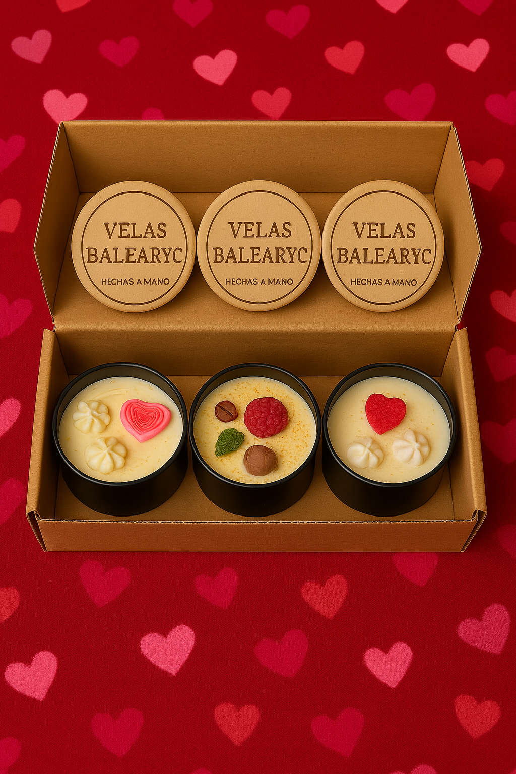 La **Caja de 3 Velas Artesanales Balearyc – Edición Corazones** está pensada para aportar calidez, romanticismo y elegancia a cualquier espacio.