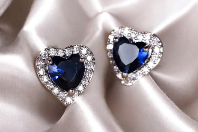 Descubre la elegancia atemporal con los Pendientes Corazón de Zafiro Azul con Circonitas de Balearyc.